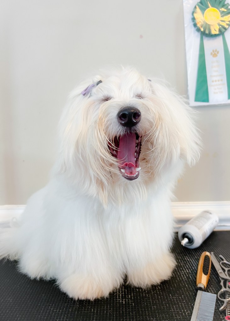 Maya (CH Still I Rise of Whispering Lane CGC CGCA) is my little spitfire. She has things to say and we all need to hear her. She even grunts to reward you for petting her when she asks. She loves the show ring where she can meet all the new people and see all the dogs. She jumps a little like a rabbit and grins the whole time. Rest assured though that if you tell her you’re tired right now, she’ll happily lay down on the nearest air vent.